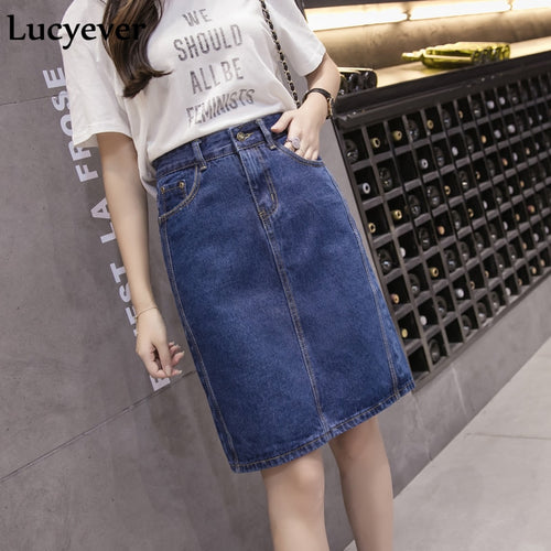Lucyever Korean loose women denim midi skirt summer A-line blue female jeans vintage casual cotton skirt plus size faldas 5XL
