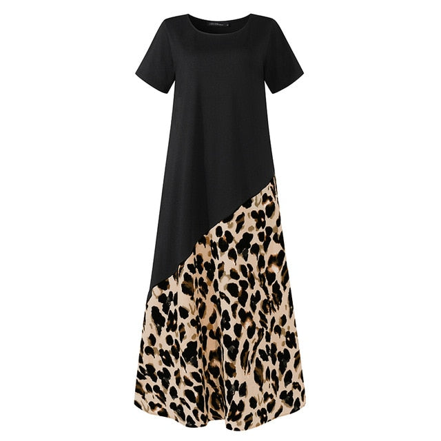 Elegant Women's Printed Sundress ZANZEA 2020 Summer Leopard Maxi Dress Short Sleeve Patchwork Vestidos Plus Size Casual Robe 5XL