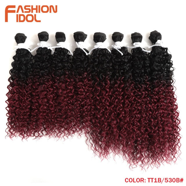 FASHION IDOL Afro Kinky Curly Hair Bundles Weave 16-20inch Ombre Brown Heat Resistant Synthetic Hair Extensions Free Shipping