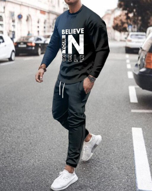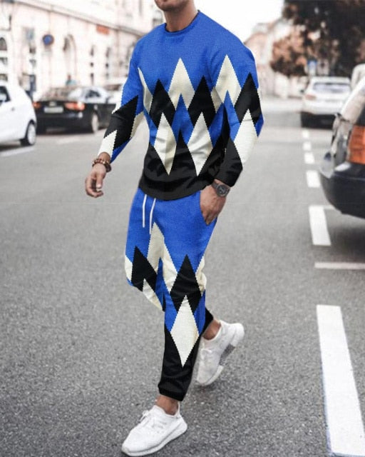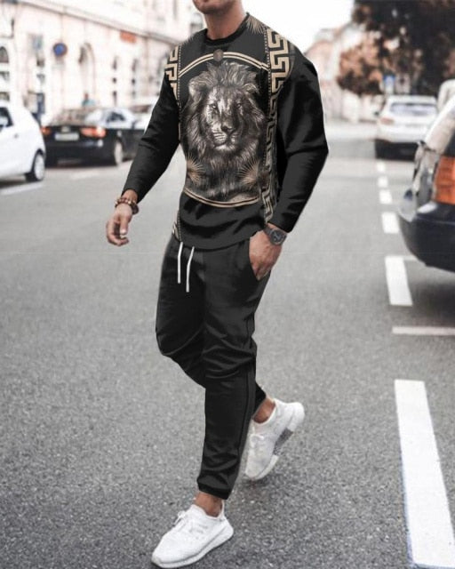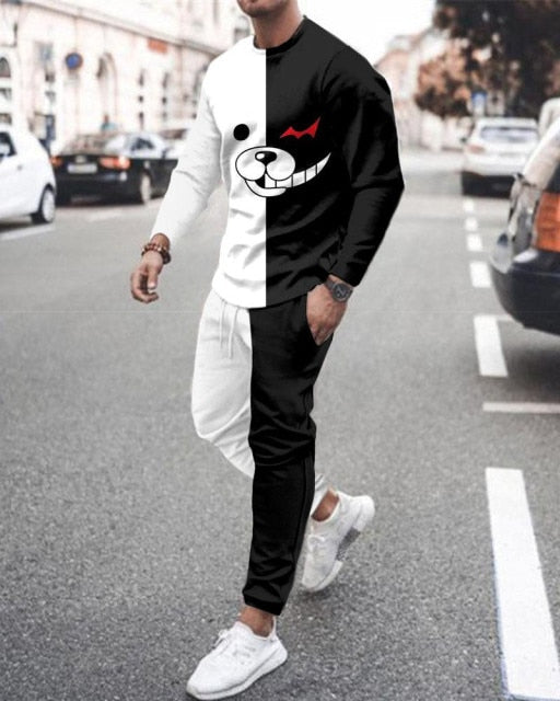Summer Men's Trend Clothing 3d Printing Kk Casual Men's Long-sleeved T-shirt Set Round Neck Plus Size Street Sports Pants Men's